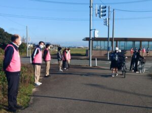 今回より、ピンク色のビブス(友愛会オリジナル✌)を着用し、より目立つようになったため、交差点での