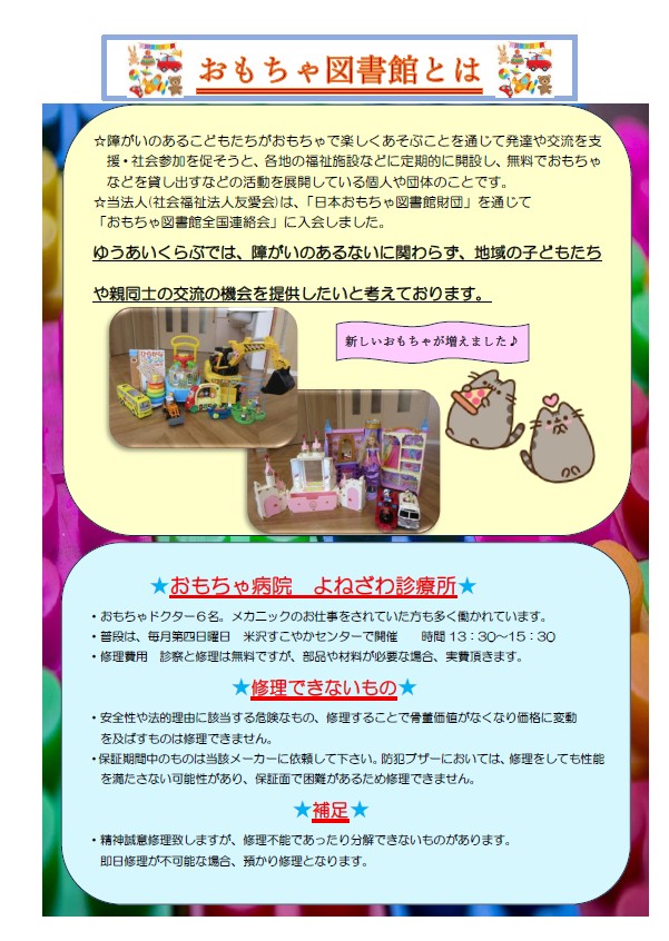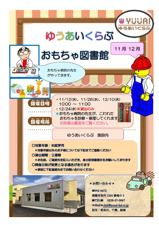 11月12月のおもちゃ図書館開催日です☆ゆうあいくらぶ