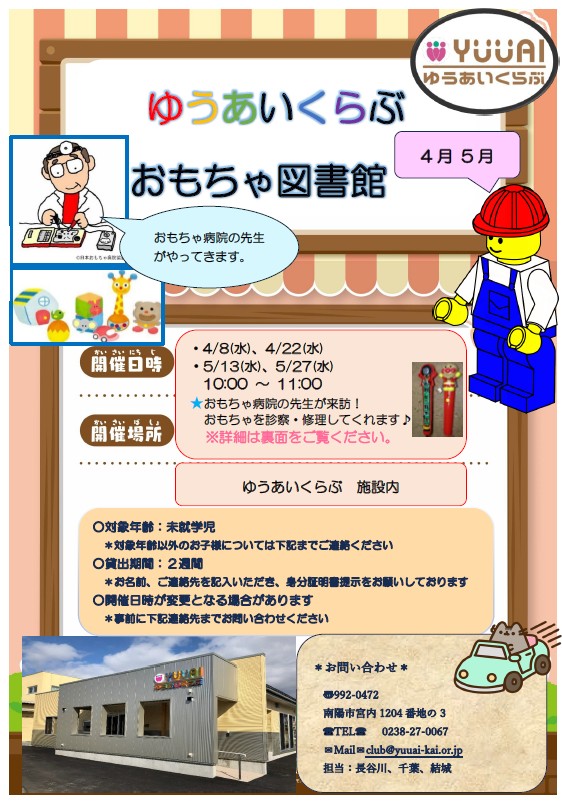 4月5月のおもちゃ図書館開催日です☆ゆうあいくらぶ