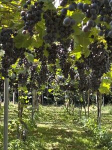 就労継続支援B型の利用者の皆さんと、たわわに実った宝石のようなマスカットベリーAを